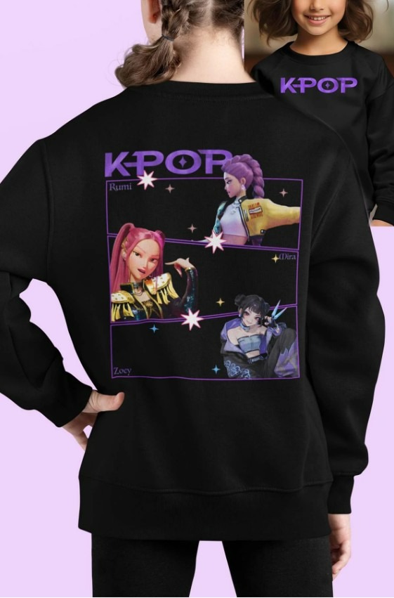 Deze sweater voelt aan als een warme knuffel van je favoriete Demon Hunter én ziet eruit alsof je net van een KPop Demon Hunters-concert komt.